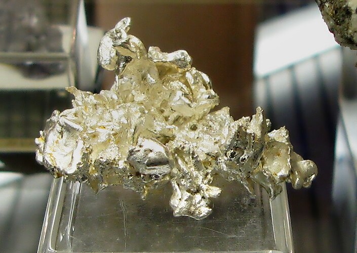 Mineral und Element Silber, gediegen (außergewöhnlich rein) aus Calcit herausgeätzt, Hua Gans Hui, Liaoning, China