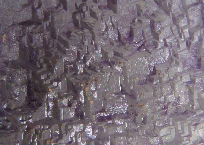 Fluorit (Flussspat), chemisch Calciumfluorid, Nahaufnahme einer Oberfläche des Minerals