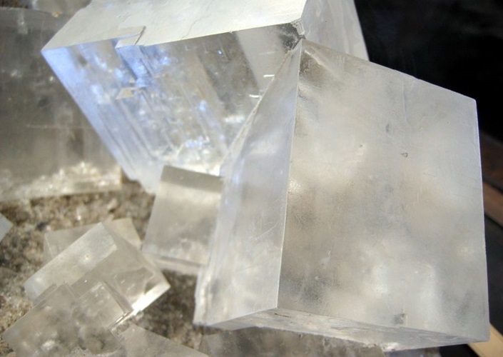 Halit (Steinsalz), chemisch Natriumchlorid, Makroaufnahme von Kristallen des Minerals, Naturhistorisches Museum Wien, Österreich