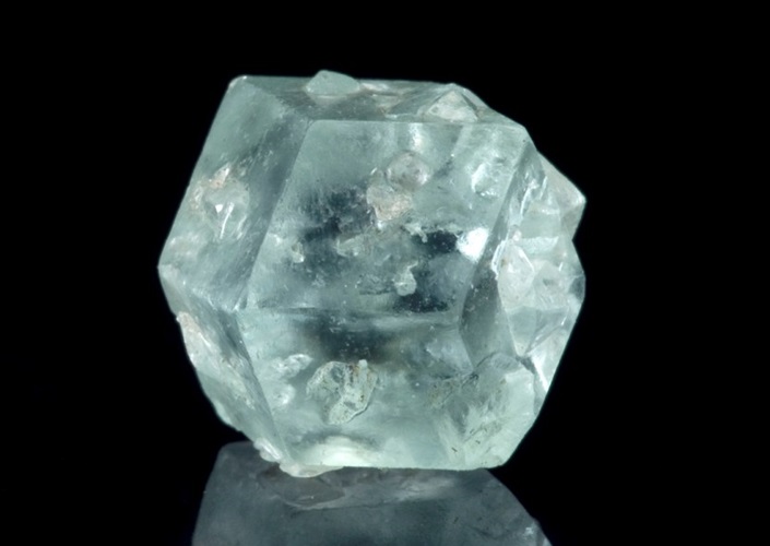 Boracit („Lüneburger Diamant“), selten vorkommend, vollkommener dodekaedrischer Kristall aus der Typlokalität von blaugrüner Farbe