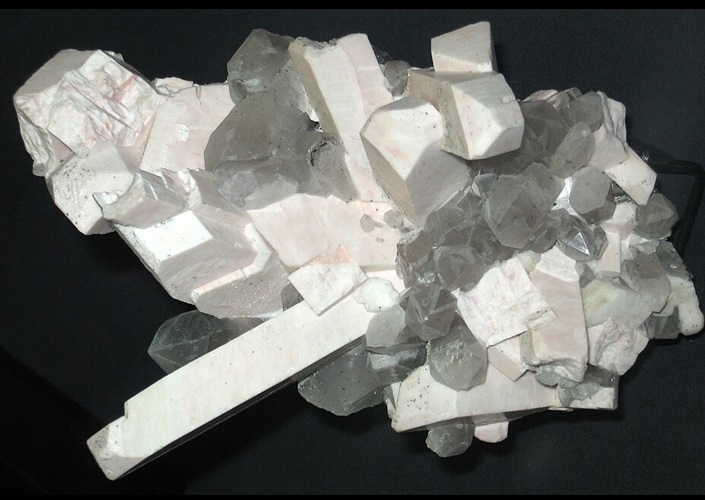 Orthoklas (Adular), ein Gerüstsilikat, häufig vorkommendes Mineral, hier mit durchsichtigem Quarz