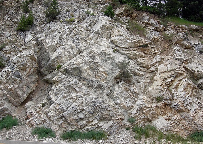 Mississippi-Marmor im Aufschluss, Big Cottonwood Canyon, Wasatchkette, Utah, Vereinigte Staaten