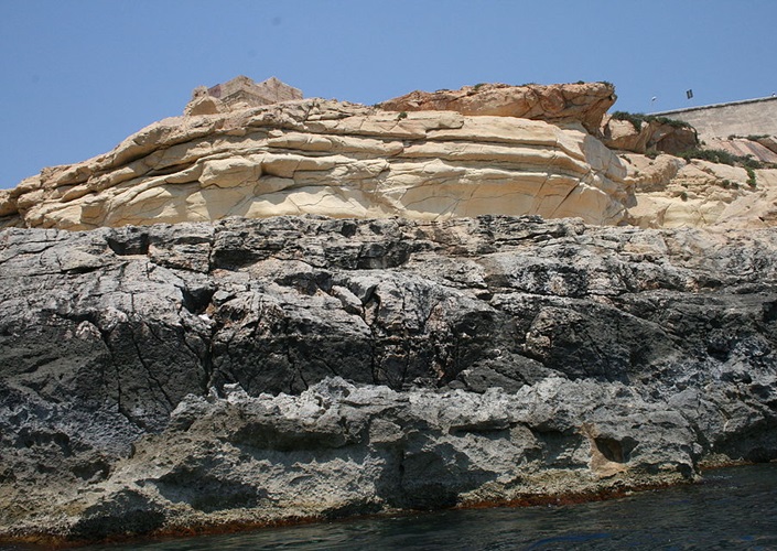 Ablagerungsfelsen mit Sandstein auf Malta, Malta