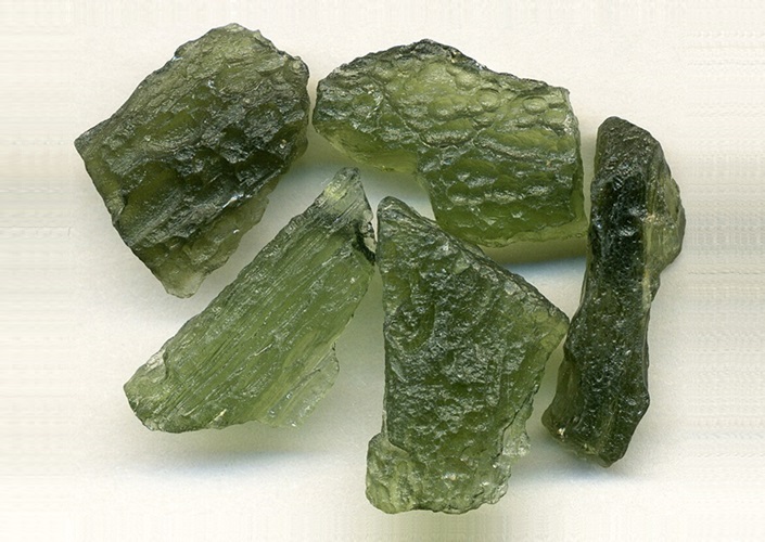 Kleine Glasobjekte, vom Einschlag großer Meteorite herrührend, hier Moldavite vom Ries-Ereignis in Bayern (Streufeld), Tschechien
