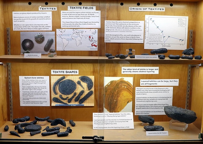 Tektite in der UCLA Meteorite Gallery, University of California Los Angeles, Kalifornien, Vereinigte Staaten