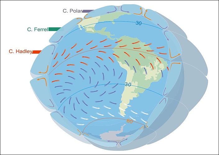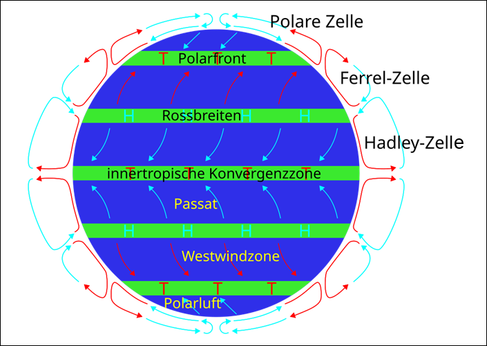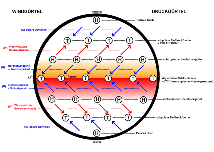 Polare Ostwindzonen – Westwindzonen – Tropische Ostwindzonen – Welt