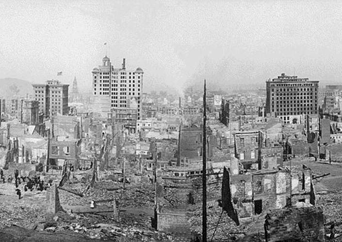 Zerstörung von San Francisco nach dem Erdbeben 1906 und den darauf folgenden Bränden, Kalifornien, Vereinigte Staaten
