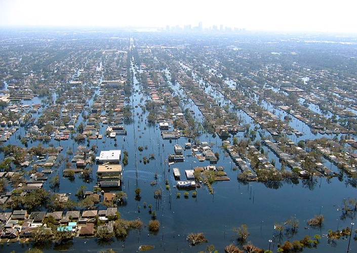 Überflutetes New Orleans (hinten Skyline), ausgelöst durch den Hurrikan Katrina, Louisiana, Vereinigte Staaten