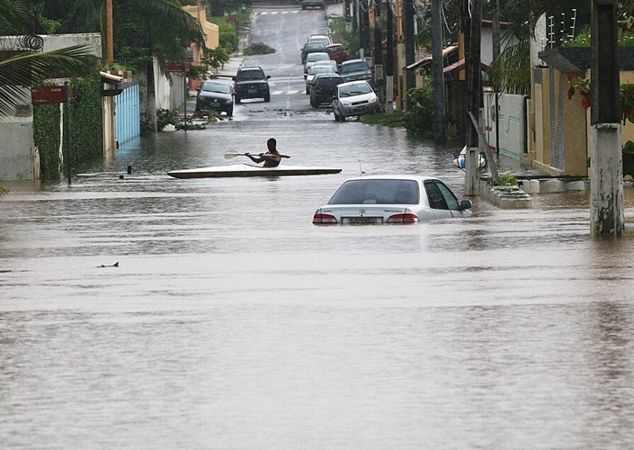 Hochwasser in Lauro de Freitas, Großraum Salvador da Bahia, Brasilien