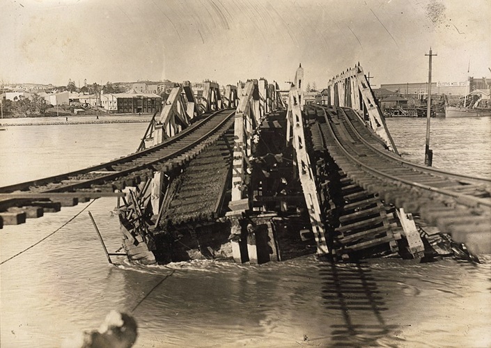 Einsturz der Fremantle Railway Bridge nach Beschädigung durch Hochwasser 1926, Perth, Australien