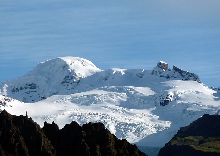 Hvannadalshnúkur im Vulkanmassiv des Öræfajökull, mit 2.110 m ü. M. der höchste Gipfel von Island