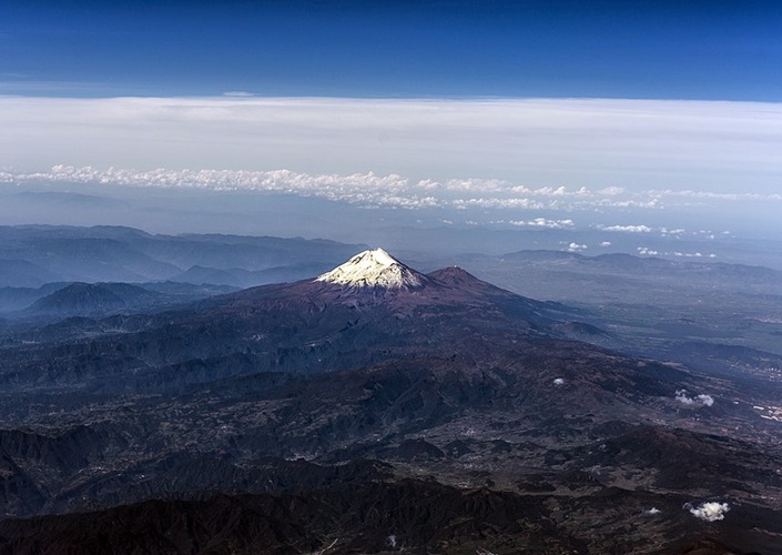 Vulkan Citlaltépetl (etwa von Mexiko-Stadt aus), mit 5.636 m ü. M. der höchste Vulkan Nordamerikas, Mexiko