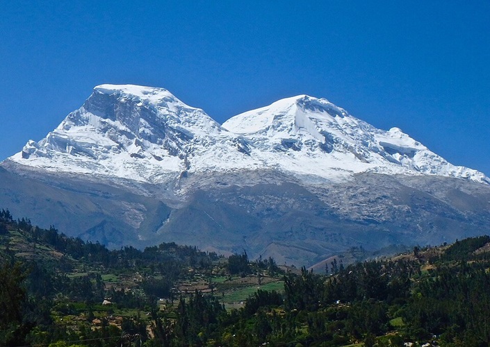 Nevado Huascarán in der Cordillera Blanca in den Anden, mit 6.768 m ü. M. der vierthöchste Berg Südamerikas, Peru