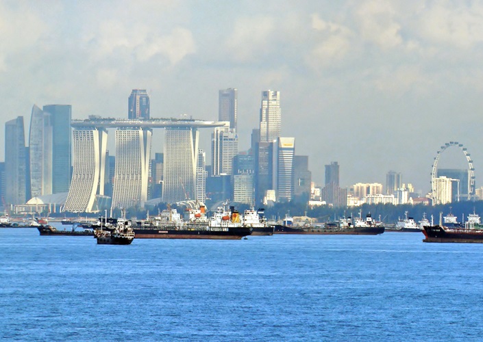Insel- und Stadtstaat in Südostasien, südlichste Spitze des asiatischen „Festlands“, Hauptinsel Pulau Ujong (585 km2), Singapur