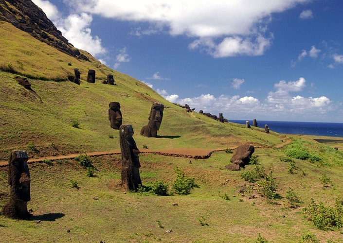 Steinskulpturen Moai, am Vulkan Rano Raraku, Osterinsel (162 km2)