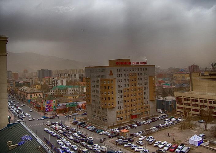 Staubsturm an einem Frühlingstag in Ulaanbaatar, Mongolei