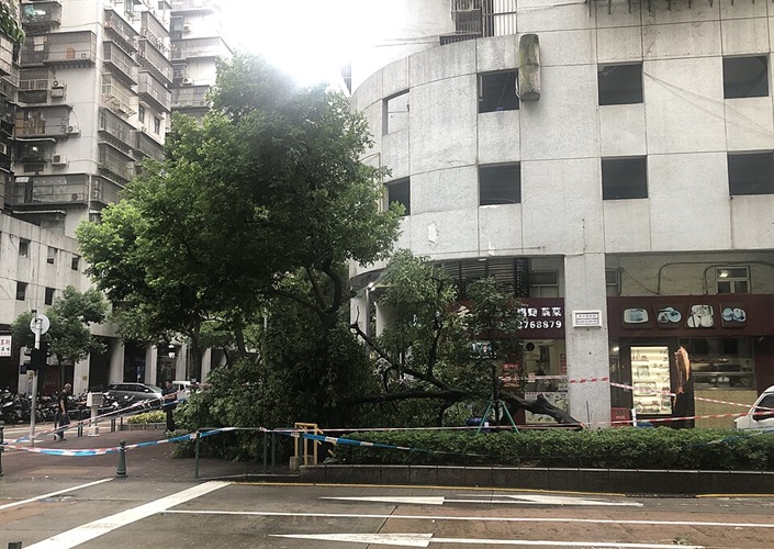 Taifun Ragasa ließ Straßenbäume umknicken, Rua Nova da Areia Preta, Macau, China
