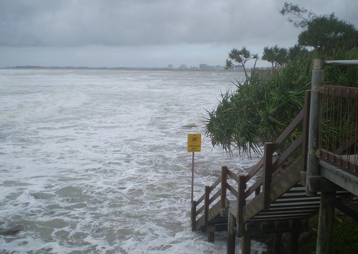 Küstenüberschwemmung durch erhöhte Gezeiten, ausgelöst von Zyklon Hamish, Caloundra, Australien