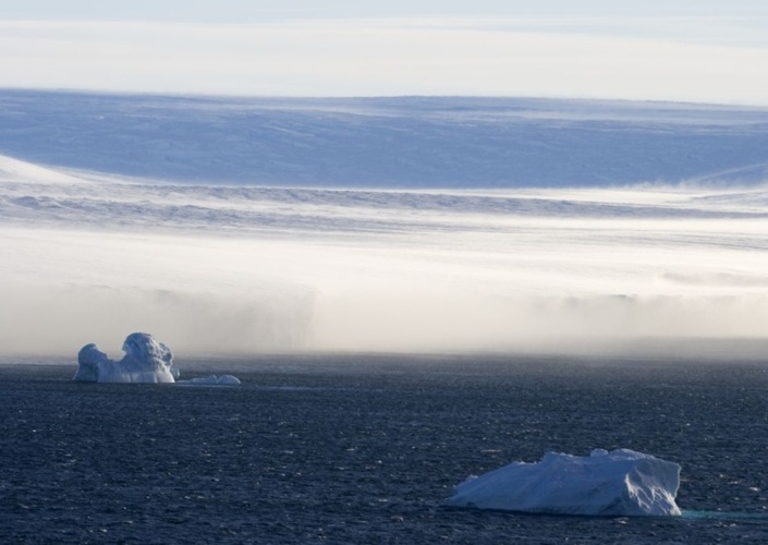 Katabatischer Wind (kalter ablandiger Fallwind), hier Geschwindigkeit bis zu 300 km/h möglich, Antarktika