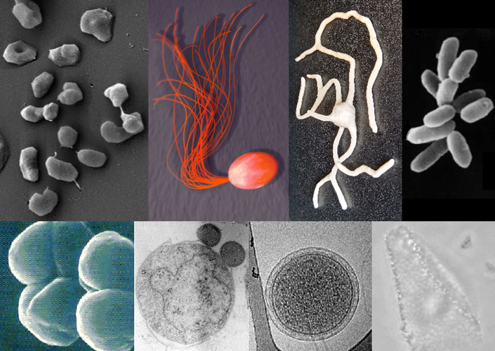 Archaeen, „Urbakterien“, Bildkomposition zur Veranschaulichung der vielfältigen Morphologie