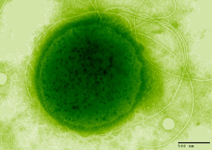 Hefepilze – einzellige Pilze, die sich durch Sprossung oder Spaltung vermehren, Spalthefe mittels Ektronenmikroskopie