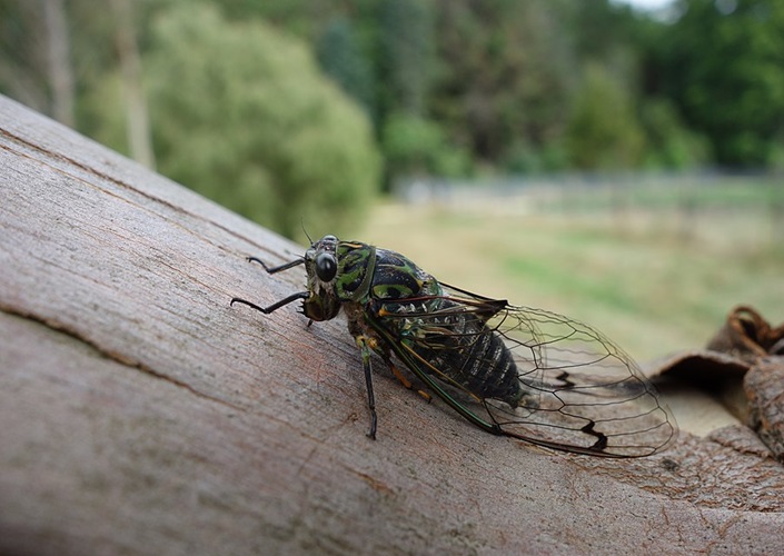 Chorus cicada (Amphipsalta zelandica) in Whakarewarewa, Nordinsel, endemische Zikadenart in Neuseeland