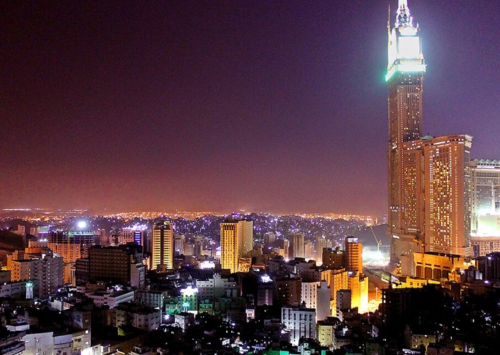 Mecca Royal Clock Tower Hotel (rechts, Höhe 601 m, eröffnet 2012), eines der größten der Welt, Mekka, Saudi-Arabien