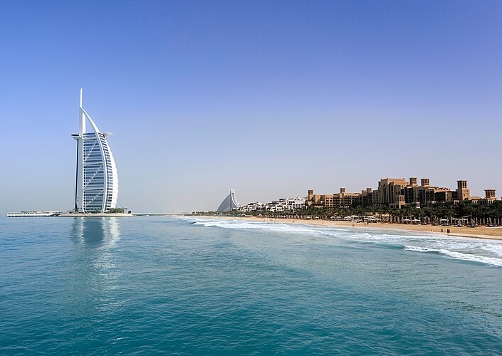Hotel Burj-al-Arab mit 321 Metern Höhe, direkt am Strand von Dubai, Vereinigte Arabische Emirate