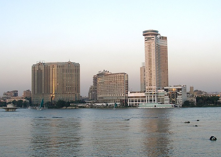 Grand Nile Tower (rechts) mit Hotel Hilton Cairo Grand Nile, Ufer des Nil, Kairo, Ägypten
