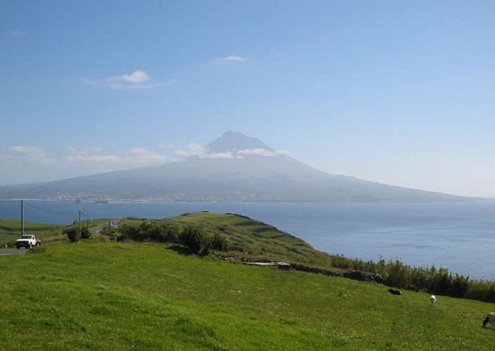 Ponta do Pico (von Faial aus), Stratovulkan auf der Insel Pico, höchster Berg des Mittelatlantischen Rückens, Azoren (Portugal)