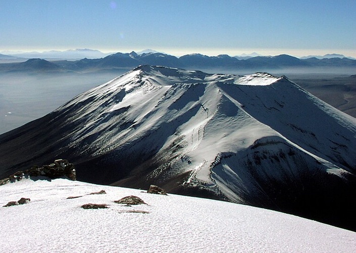 Vulkankrater Juriques (vom Gipfel des Licancabur), erloschener Schichtvulkan der Cordillera Occidental, Bolivien und Chile