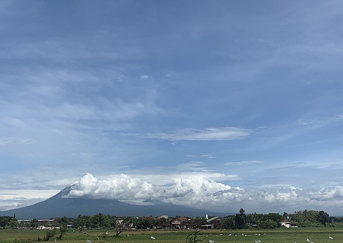 Java, bevölkerungsreichste Insel der Erde, aktiver Vulkan Mount Merapi, zwischen Surakarta und Yogyakarta, Indonesien