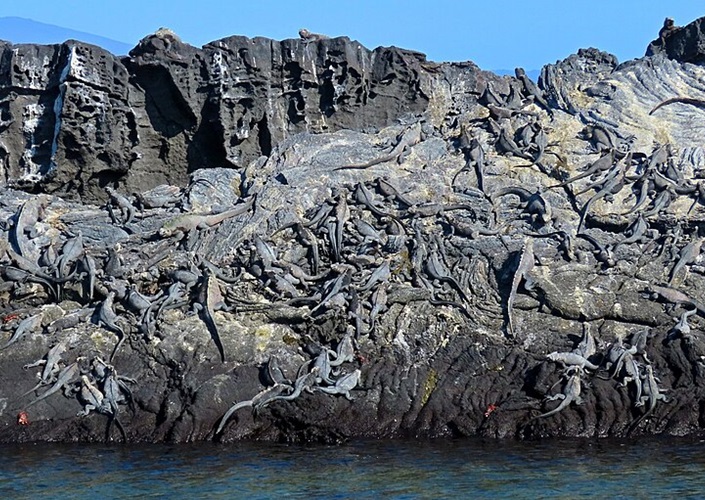 Meerechsen auf Fernandina, der drittgrößten der Galapagosinseln (642 km2), Ecuador