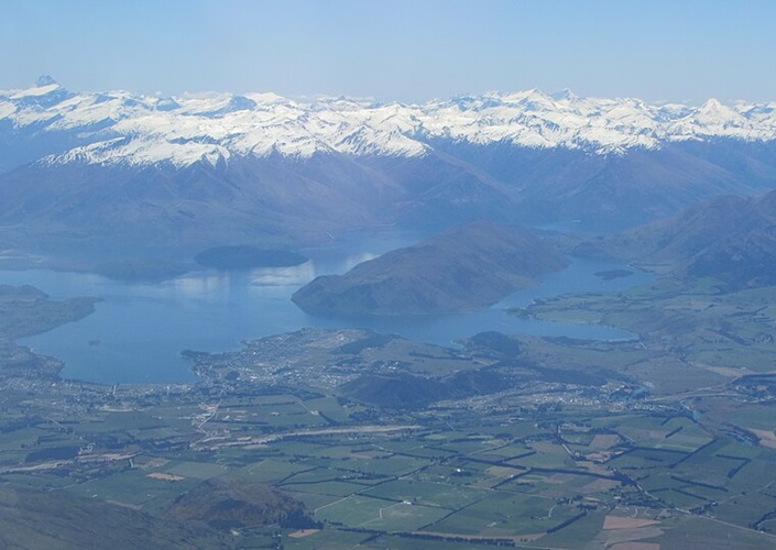 Über Lake Wanaka im Süden der Südinsel (zwölftgrößte Insel der Erde), Neuseeland