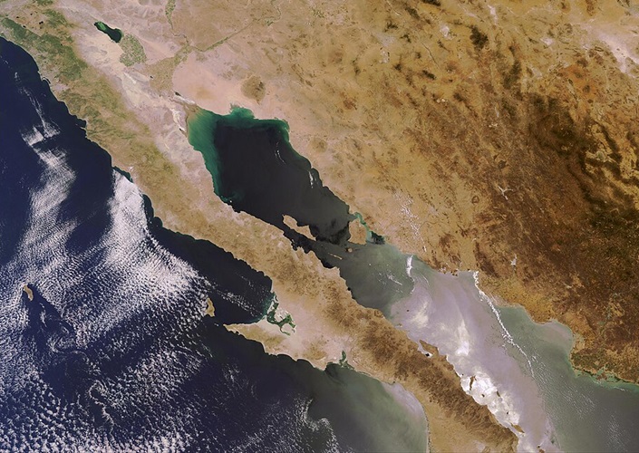 Satellitenfoto von Niederkalifornien, lange Halbinsel im Westen von Mexiko