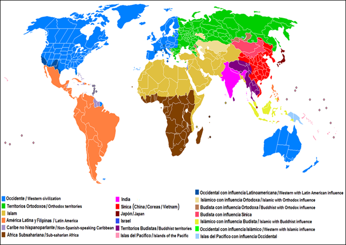 Karte der weitgefassten „Kulturräume“ der Weltbevölkerung