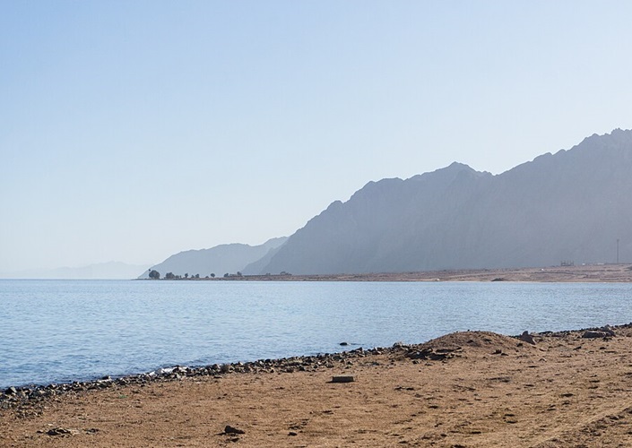 Golf von Akaba, eine der langgestreckten Buchten, in denen das Rote Meer im Norden ausläuft, hier Dahab, Sinai, Ägypten