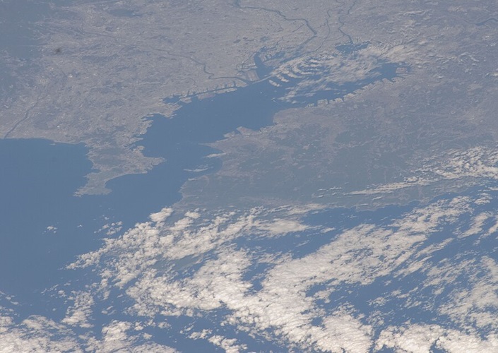 Weltraumblick zur Bucht von Tokio (rechter Teil Wolken), gesehen während der ISS Expedition 30, Japan