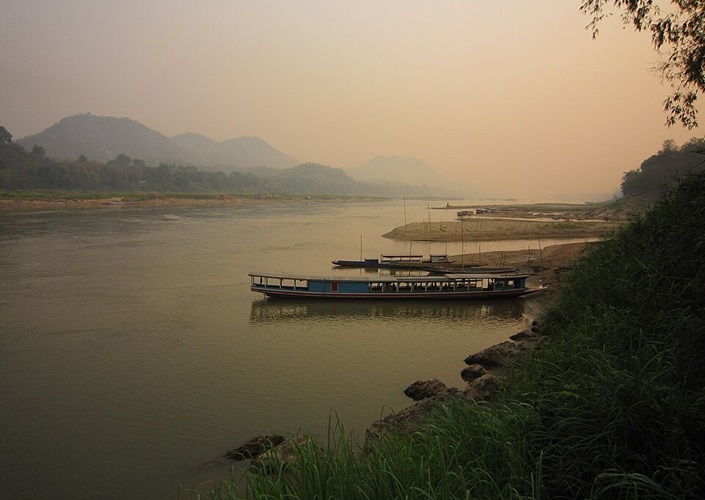 Mekong, internationaler Strom in Südostasien, der sechs Länder durchquert, Luang Prabang, Laos