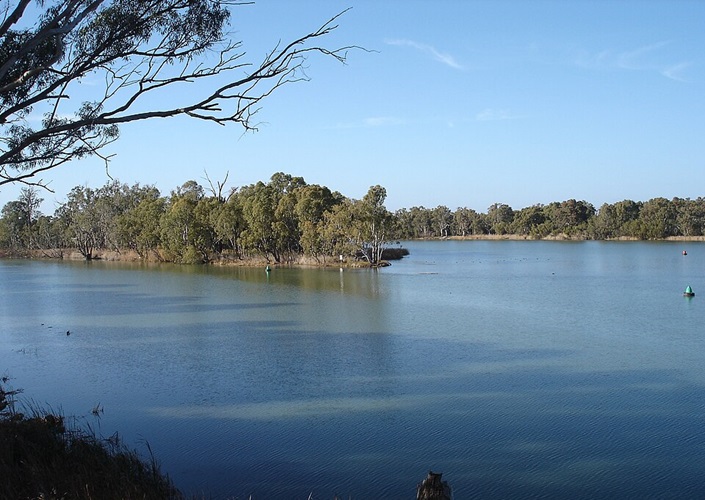 Darling River, Mündung in den Murray (rechts) bei Wentworth, größtes Flusssystem des Kontinents, Australien