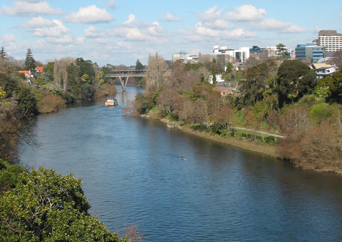 Waikato River in Hamilton, mit 425 km längster Fluss des Landes, Nordinsel, Neuseeland