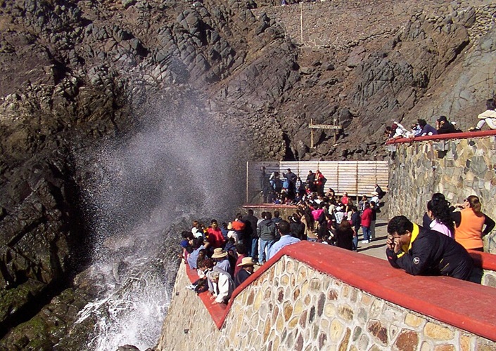 La Bufadora, „Blasloch“ (Brandungsgeysir) als Öffnung am Ende einer Meereshöhle, Halbinsel Niederkalifornien, Mexiko