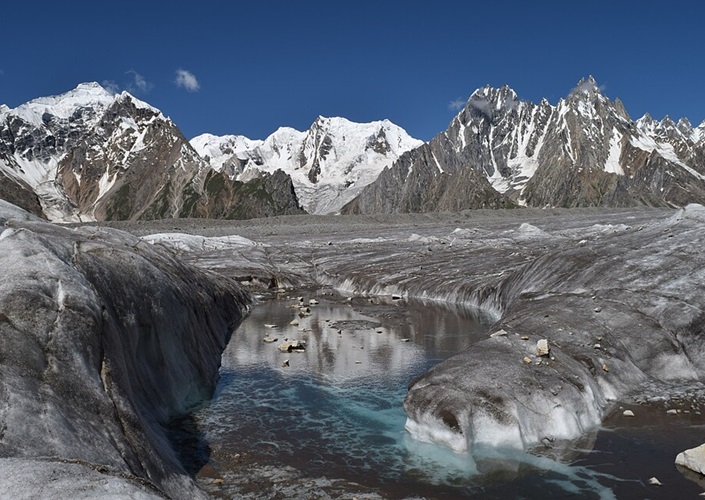 Biafo-Gletscher, 47 km langes Eisfeld in den Bergen des Karakorum, Pakistan