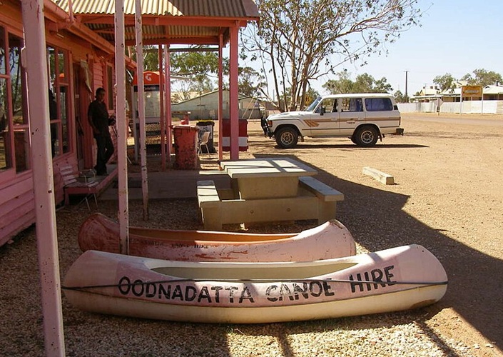 Oodnadatta (Pink Roadhouse hier), mit 50,7°C (1960) Hitzerekord Ozeaniens und der Südhalbkugel, Australien
