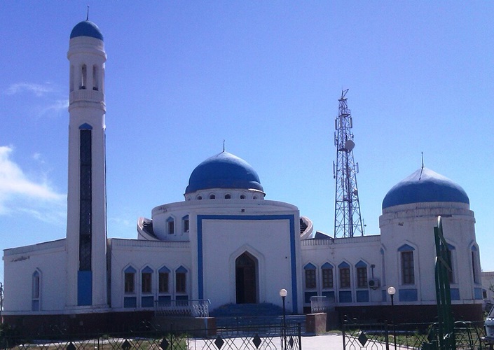 Moschee in Qurmanghasy, mit 150 mm (pro Jahr) ein Regenrminimum von Städten in Europa, Kasachstan