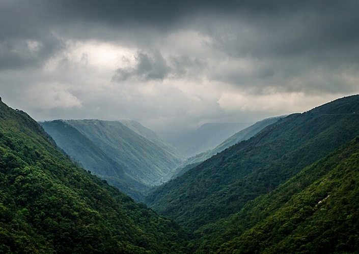Khasi-Berge, Mawsynram hält mit 11.870 mm (pro Jahr) neuerdings Regenrekord weltweit (1985 sogar 26.000 mm), Indien