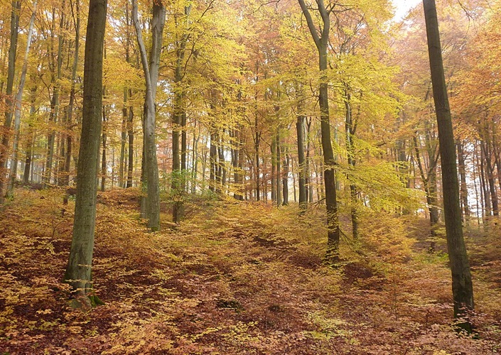 Sommergrüner Laubwald im Herbst, bei Hülshof (Hessen), Deutschland