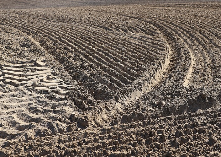 Ausgetrockneter Boden am Weg von Sulurpeta nach Sriharikota, Indien