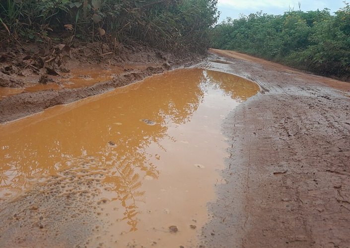Aufgeweichter Boden nach heftigem Regenfall, beeinträchtigt lokalen Verkehr und Wirtschaft, Siaya County, Kenia