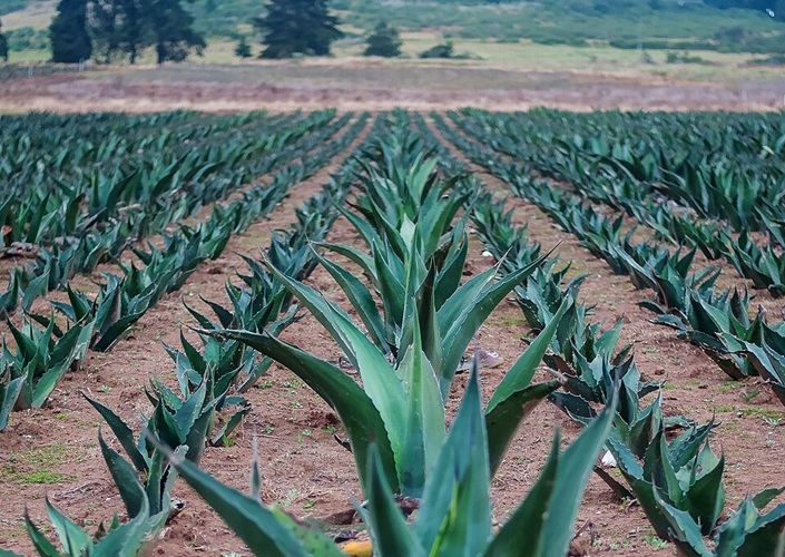Mit Agaven kultivierter Boden, Hacienda de Amoltotepec, Puebla, Mexiko